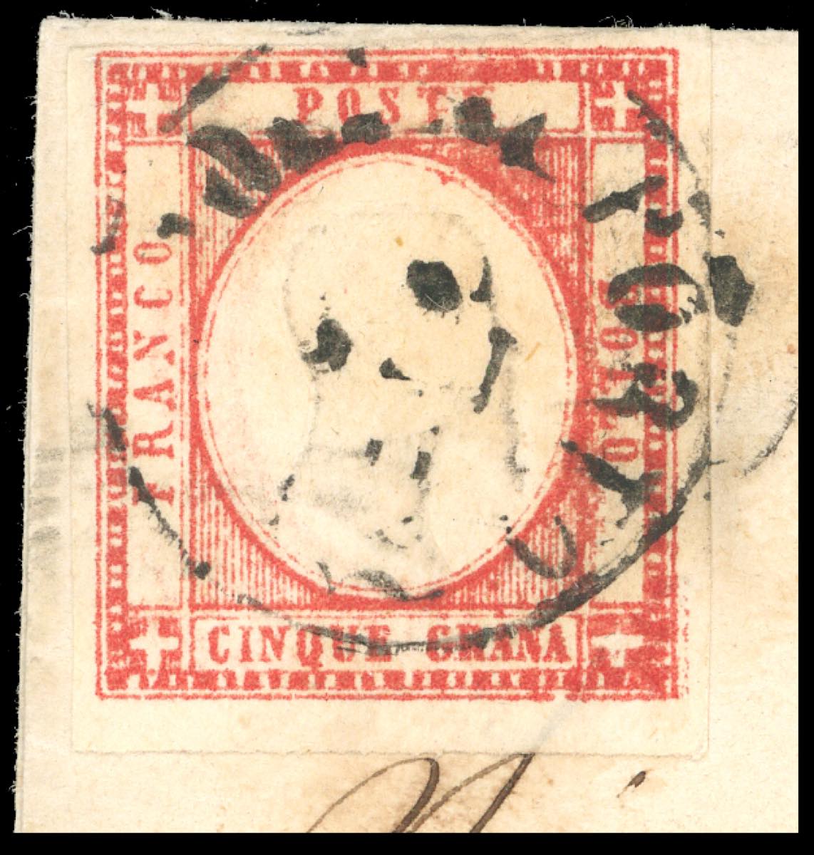 Lotto 441 - 1861 - 5 grana carminio (21f), stampa smossa e forte ...