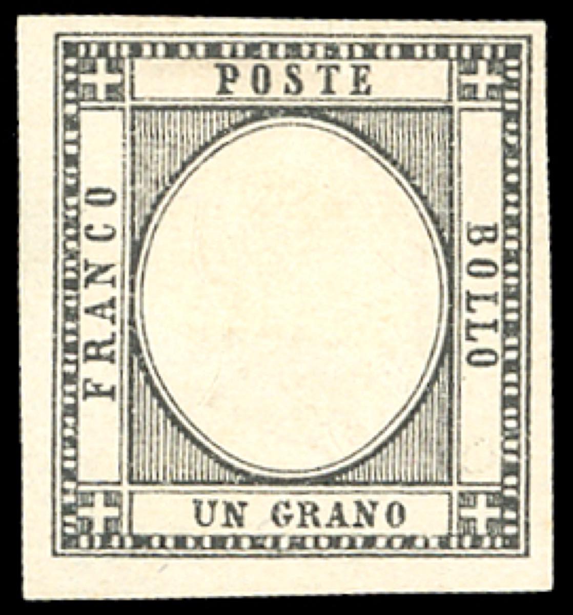 PROVE DI STAMPA 1861 - 1 grano nero (19), prova di stampa della prima impressione, doppia effigie postuma, nuova senza gomma, molto fresca. ... Leggi tutto