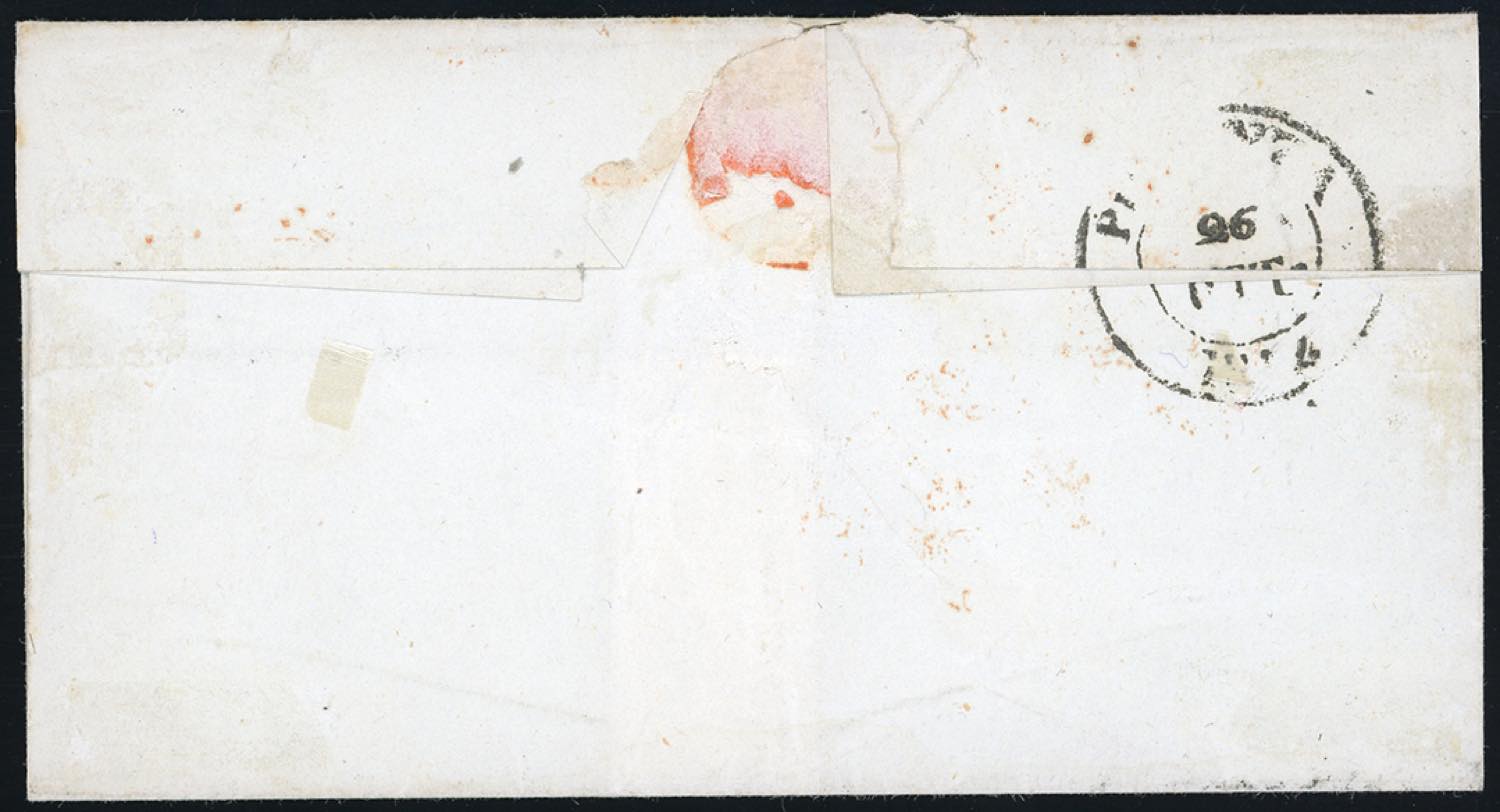 1854 - 5 cent. giallo chiarissimo (6b), striscia orizzontale di tre, perfetta e ben marginata, su fresca sovracoperta di lettera da Fiorenzuola 25/10/1854, doppio cerchio rosso, a Piacenza. Eccezionale qualità, lettera da esposizione. Em. e A.Diena, Vaccari, cert. Giulio Bolaffi per esteso.