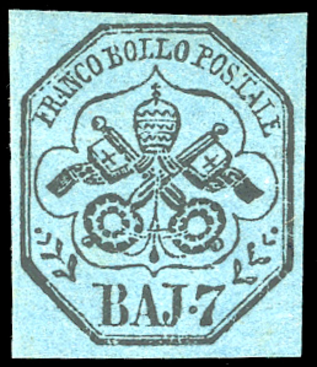 Lotto 582 - 1852 - 7 baj azzurro (8), gomma originale, perfetto. Molto ...