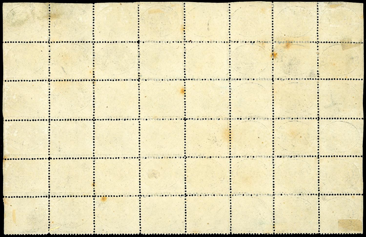 1868 - 3 cent. grigio (24), blocco di 48 esemplari, 6 esemplari gomma originale, 42 gomma integra, sei esemplari con ingiallimenti, gli altri perfetti. Raro blocco!