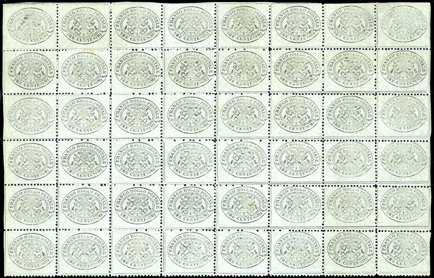 Lotto 623 - 1868 - 3 cent. grigio (24), blocco di 48 esemplari, 6 ...