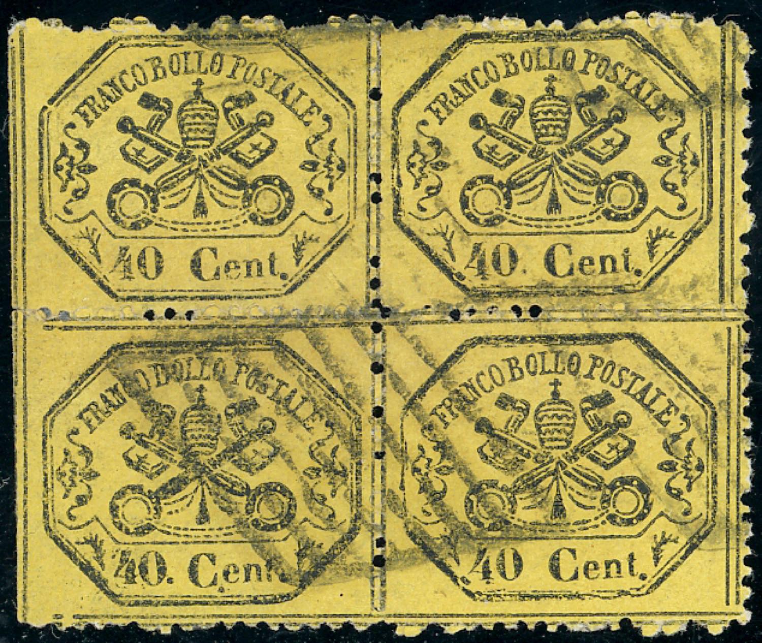 Lotto 630 - 1868 - 40 cent. giallo (29b), blocco di quattro, usato, ...