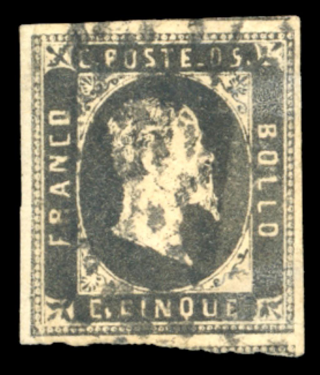 Lotto 723 - 1851 - 5 cent. nero (1), usato, riparato.