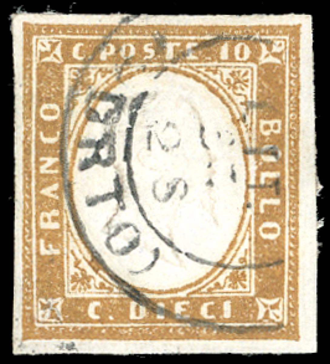 Lotto 804 - 1863 - 10 cent. bistro scuro (14Eb), perfetto, usato. ...