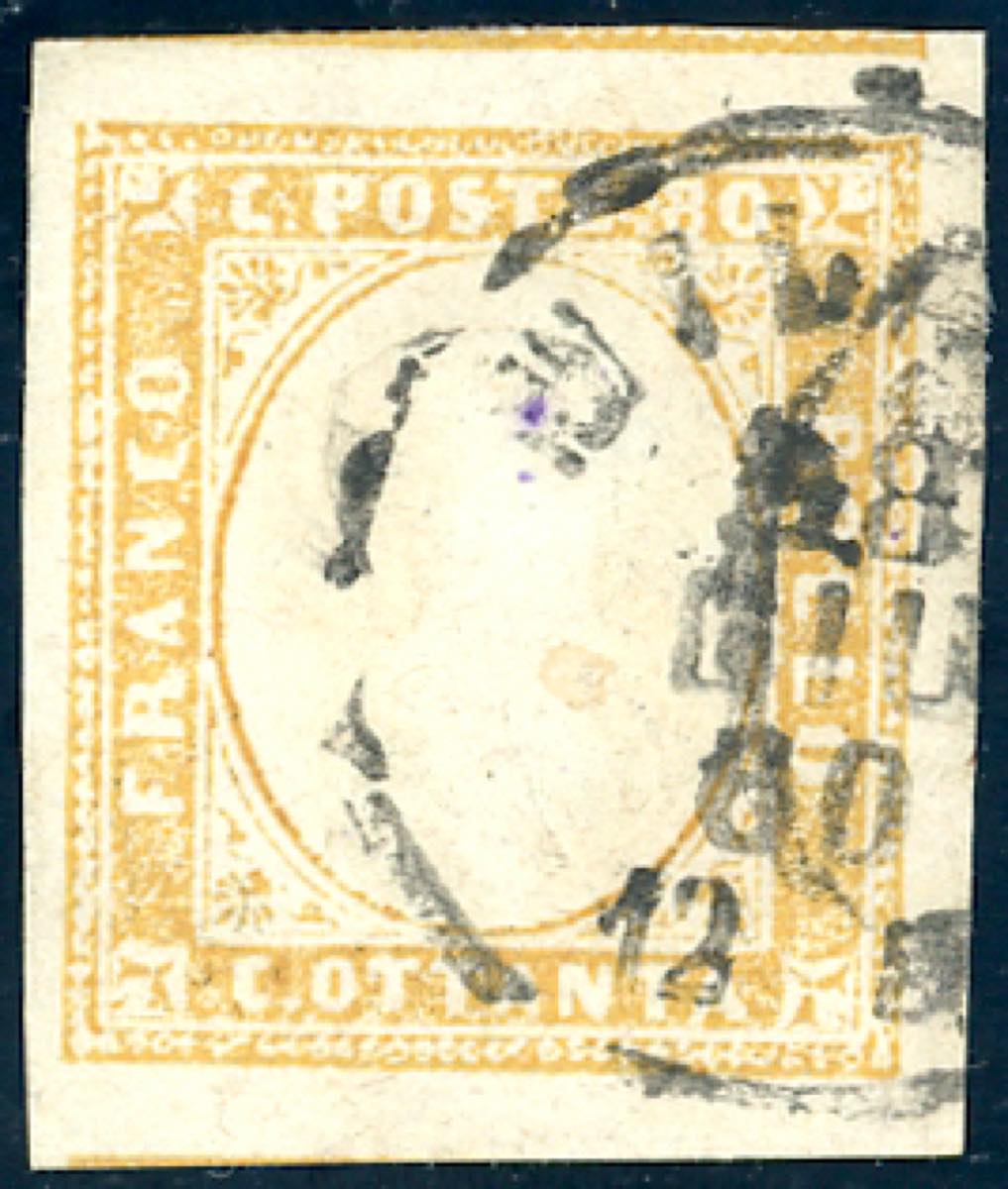 1860 - 80 cent. giallo arancio chiaro (17B), perfetto, margini eccezionali, usato a Milano 28/6/1860. Cert. Colla.