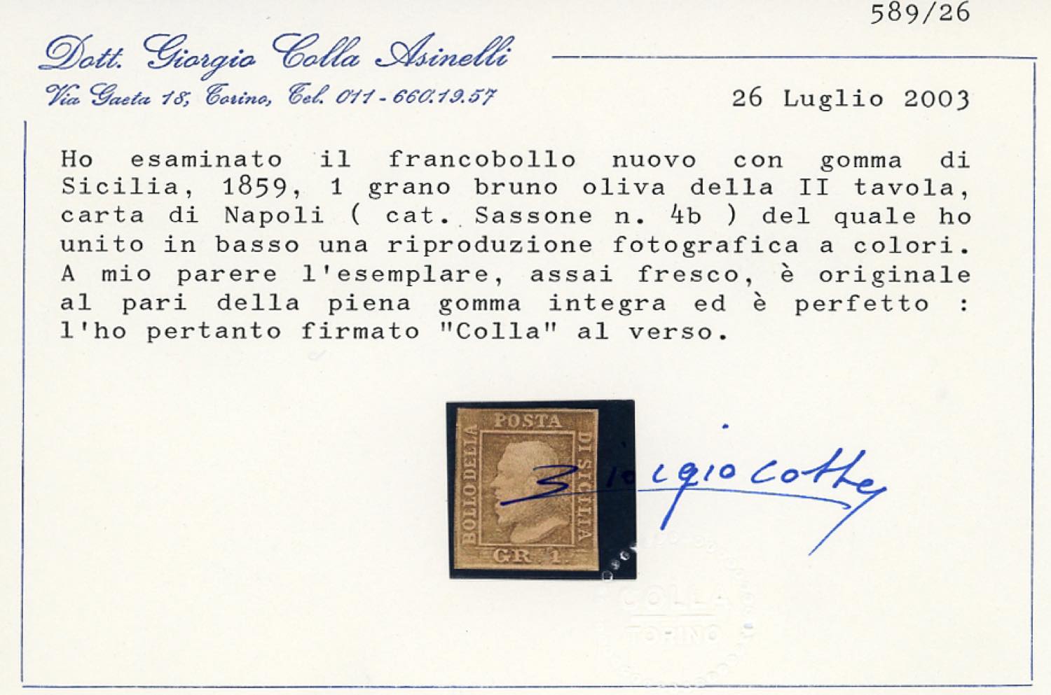 Lotto 894 - 1859 - 1 grano bruno oliva, II tavola (4b), gomma originale ...