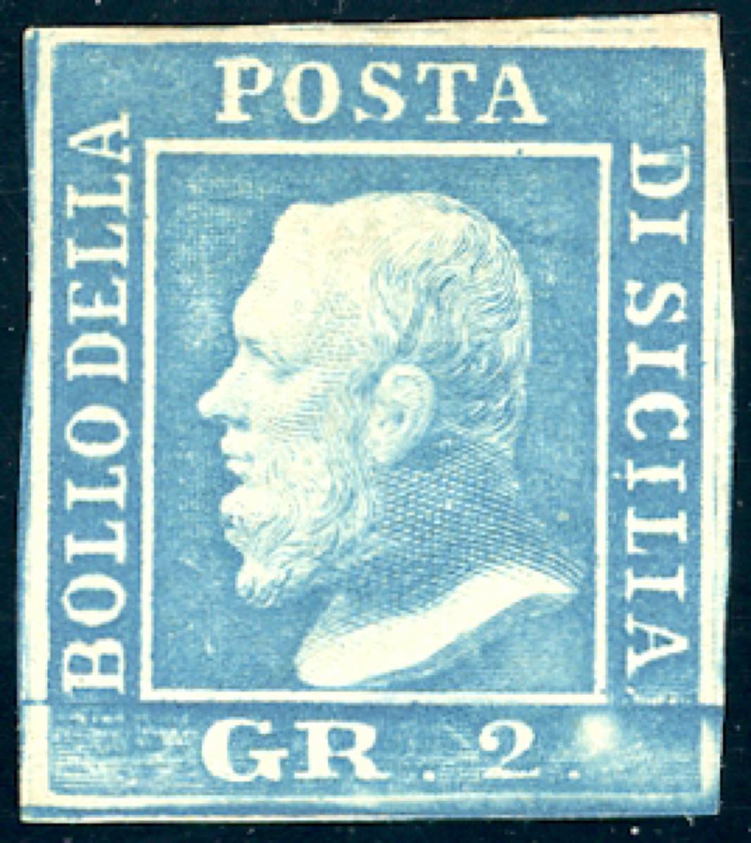 1859 - 2 grana azzurro, III tavola, carta di Palermo, pos. 83 (8d), gomma originale, perfetto e molto fresco. Em. e A.Diena, Zanaria.