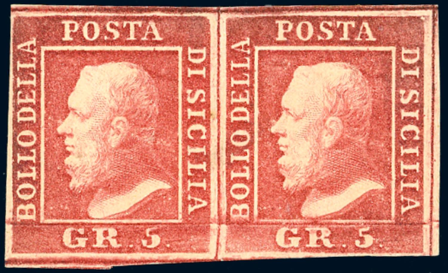 Lotto 909 - 1859 - 5 grana rosa carminio, I tavola (9), coppia ...