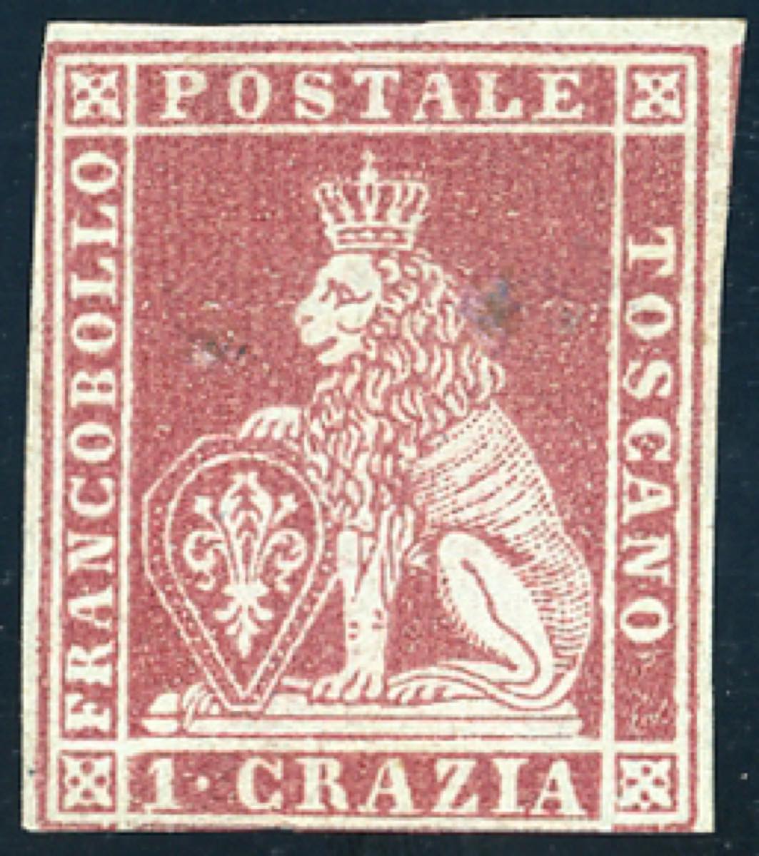 1851 - 1 crazia carminio su grigio (4d), tre buoni margini, corto in basso e con piccola riparazione. Raro, occasione. Em.Diena, Colla, ... Leggi tutto
