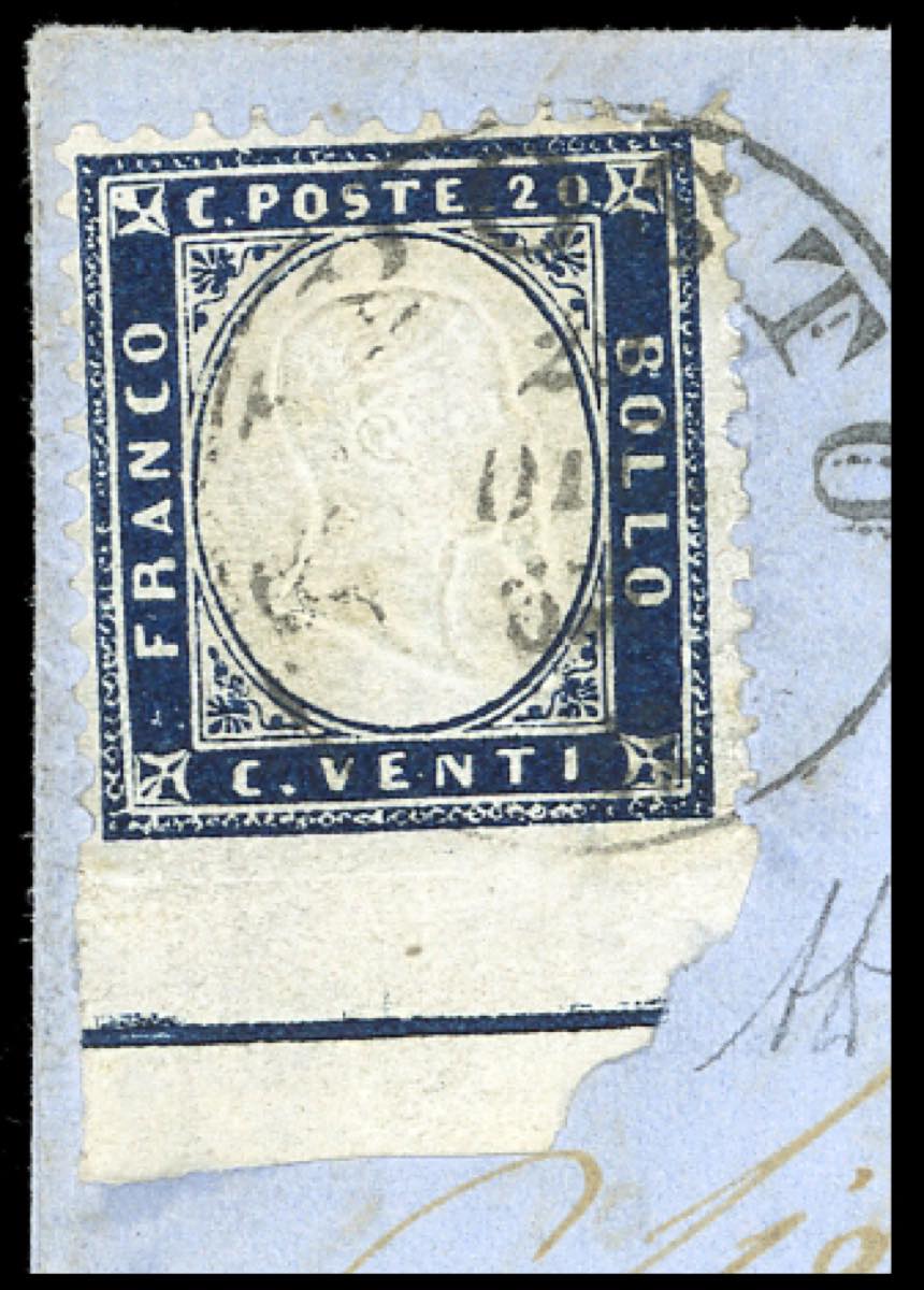 Lotto 1113 - 1862 - 20 cent. indaco, non dentellato in basso con bordo ...