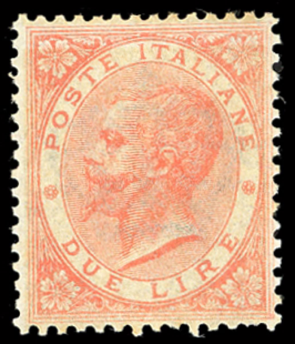 Lotto 1184 - 1863 - 2 lire scarlatto chiaro, De la Rue, tiratura di ...