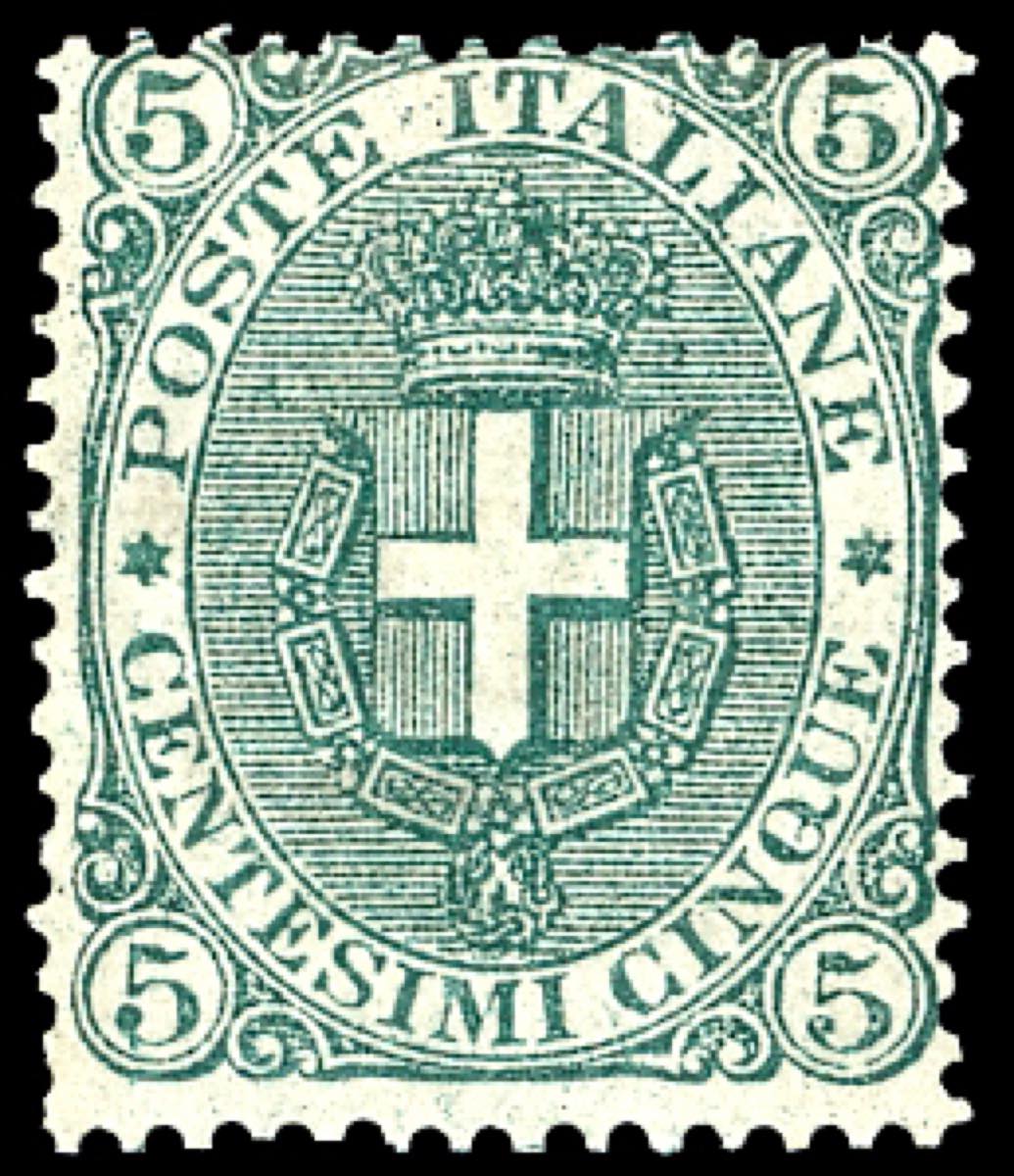 Lotto 1255 - 1891 - 5 cent. Stemma, fondo a righe (59), discreta ...