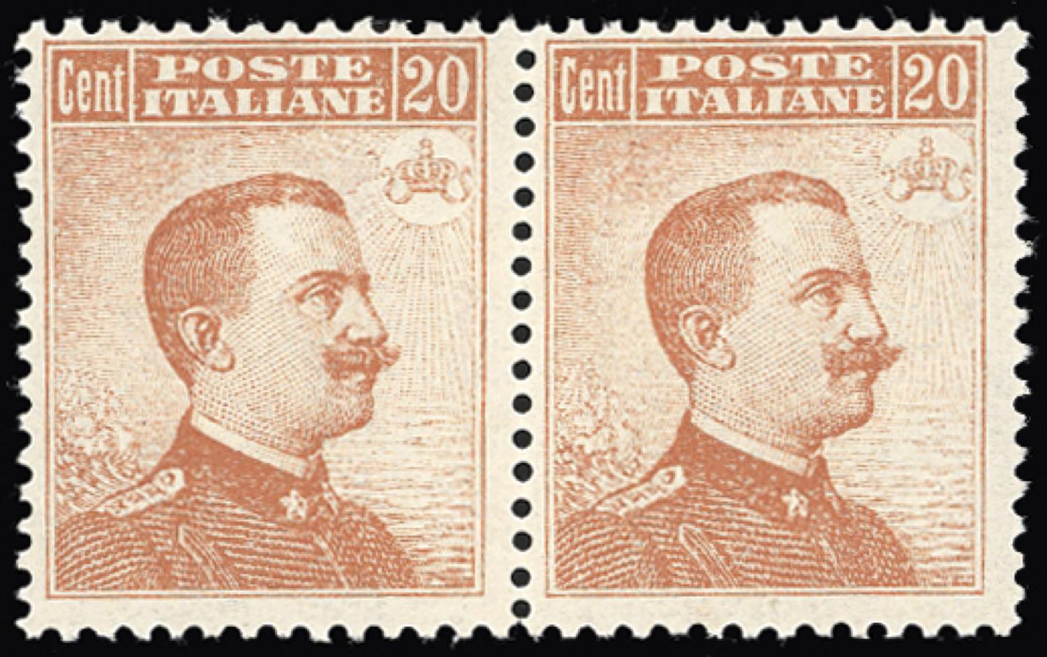 Lotto 1327 - 1916 - 20 cent. Michetti, senza filigrana (107), coppia, ...