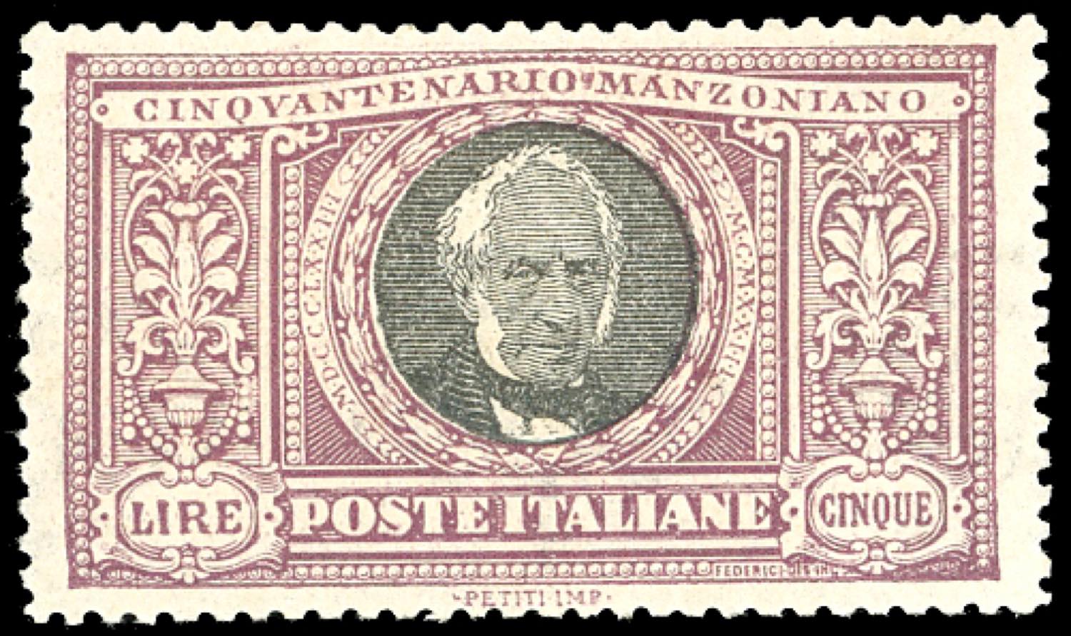 Lotto 1357 - 1923 - 5 lire Manzoni (156), ben centrato, gomma originale ...