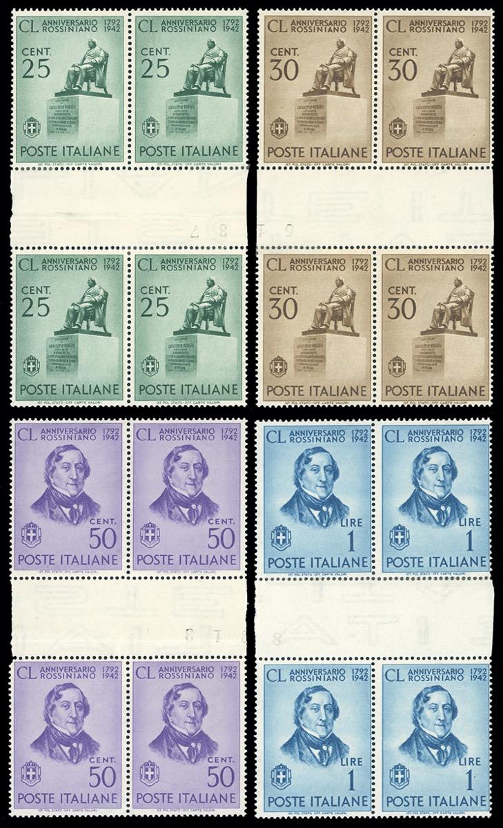 Lotto 1432 - 1942 - Rossini, serie competa in blocchi di quattro con ...