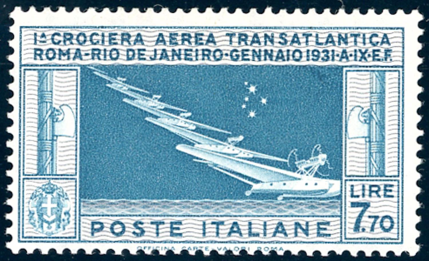 1930 - 7,70 lire Crociera Balbo (25), gomma originale integra, perfetto. A.Diena, Ferrario, cert. Cilio.