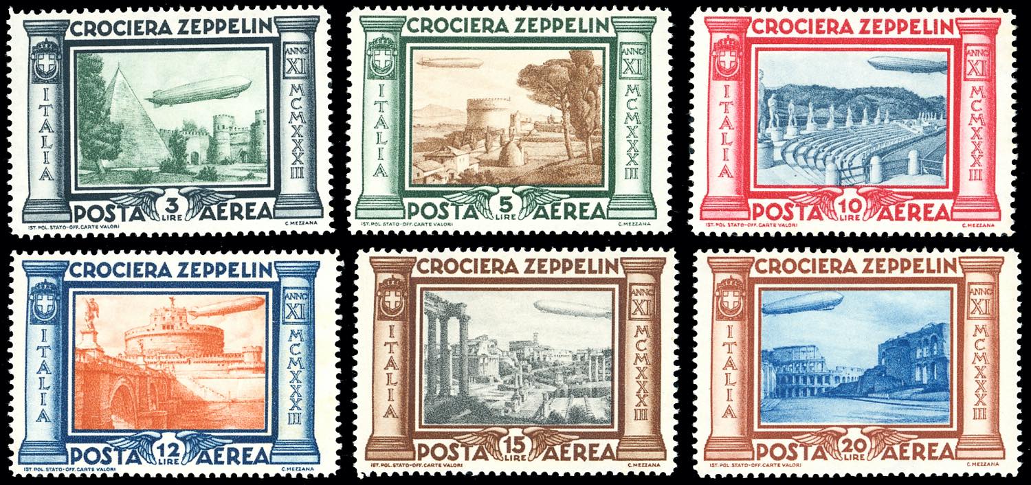 1933 - Zeppelin, serie completa (45/50), gomma originale integra, perfetti.