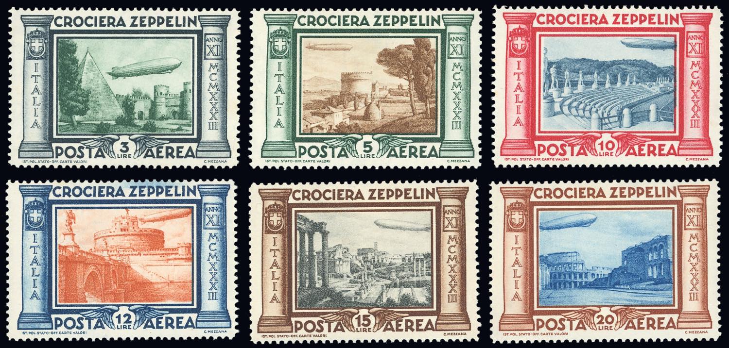 1933 - Zeppelin, serie completa (45/50), gomma originale integra, perfetti. Ottima qualità. Ferrario.