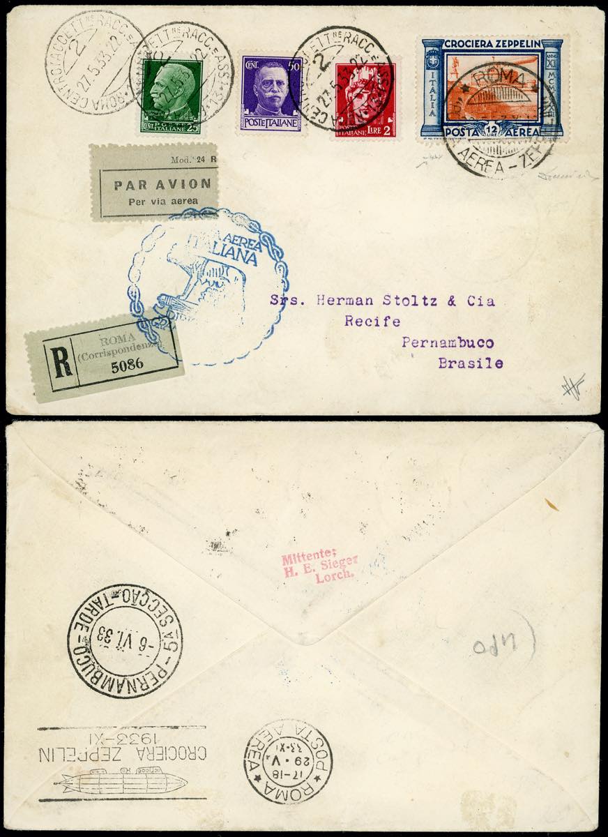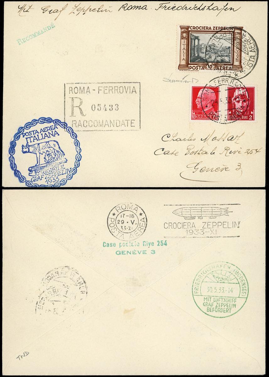 1933 - Zeppelin, serie completa (45/50), perfetti, su sei cartoline/buste con valori complementari, tutti con i bolli speciali della ... Leggi tutto