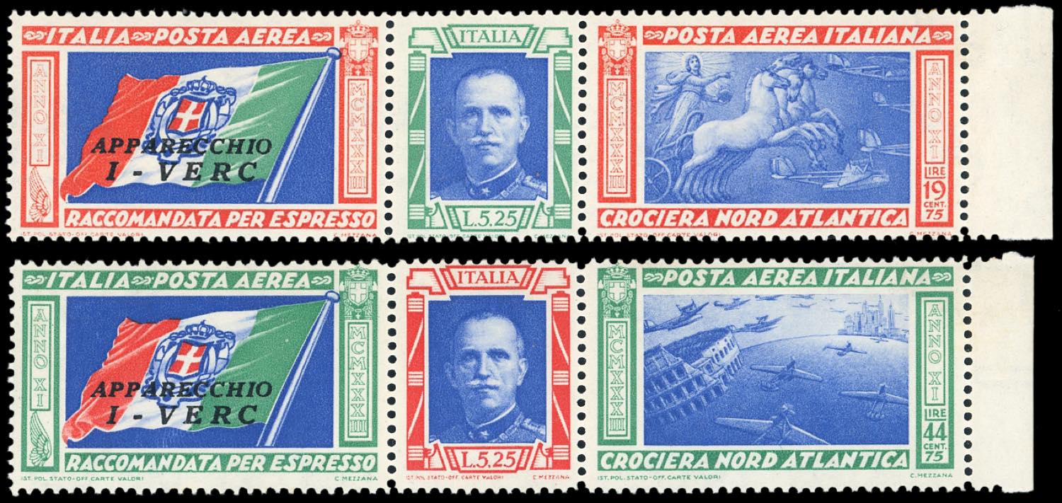 1933 - Trittici I-VERC (51T/52T), gomma originale integra, perfetti. Belli. Cert. Ferrario.
