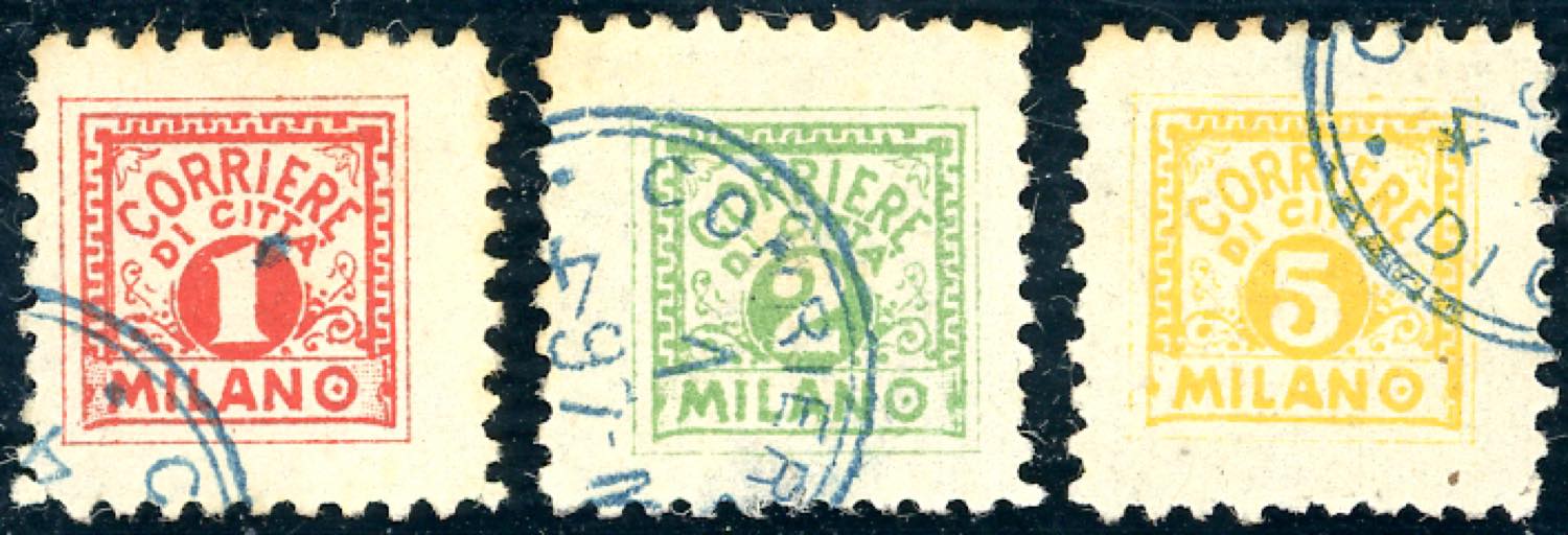CORRIERI DI CITTA' 1897 - Cooperativa Fattorini Milano, serie completa (Unificato 1/3), usati, lievi difetti, Molto rari!