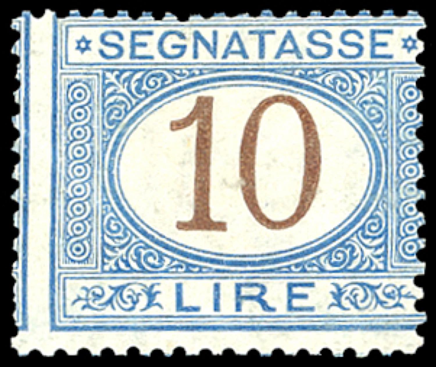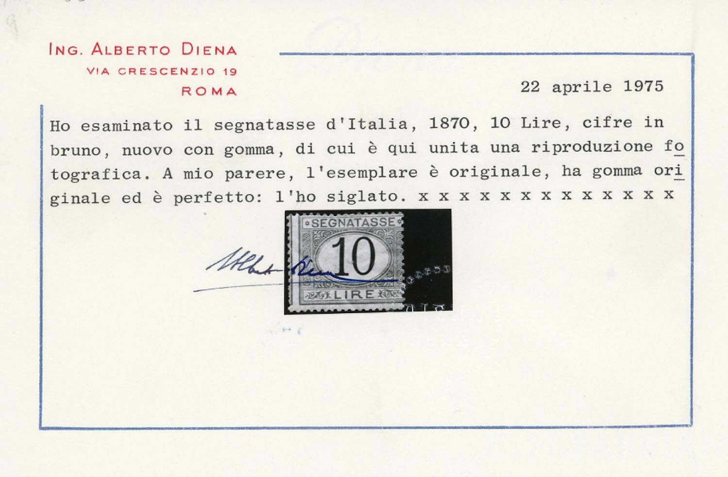 1870 - 10 lire azzurro e bruno (14), gomma originale, ottimo stato. Molto fresco. Cert. A.Diena.