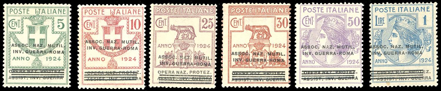 ASSOC. NAZ. MUTIL. INV. GUERRA-ROMA 1924 - Soprastampati, sei valori (70/75), gomma originale integra, perfetti.