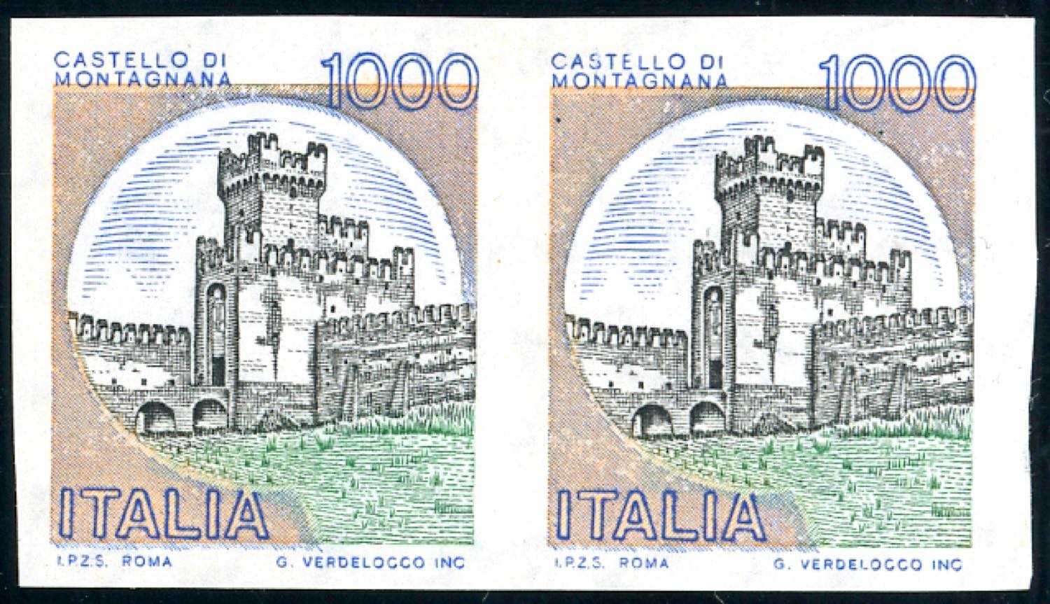 1980 - 1000 lire Castelli, coppia orizzontale non dentellata (1527e), gomma originale integra, perfetta. Ferrario.