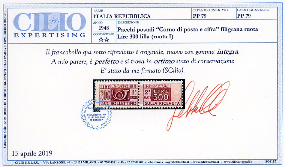 1946/51 - Filigrana ruota, serie completa (66/80), gomma originale integra, perfetti. Cert. Cilio per il 300 lire, Ferrario per i n. 77/80.
