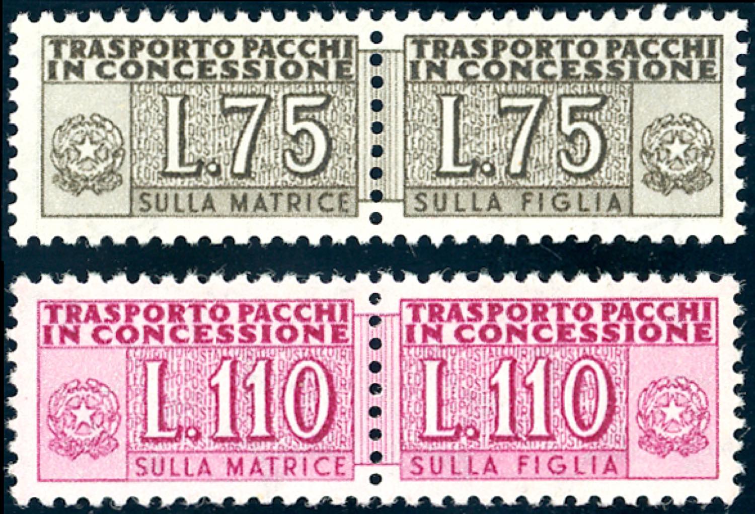 1955 - 75 lire e 110 lire, filigrana stelle (9,12), ben centrati, gomma originale integra, perfetti. Cert. Ferrario.