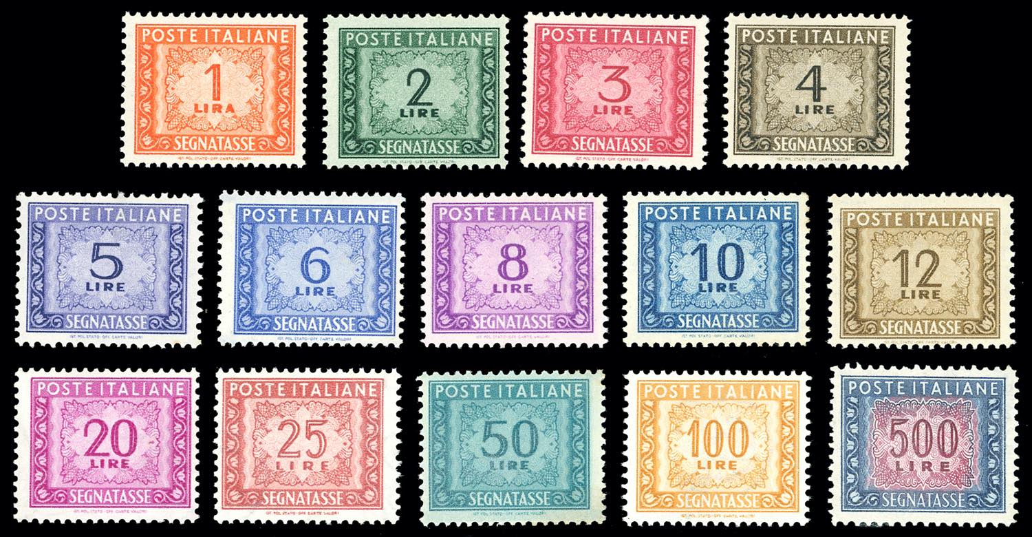1947/54 - Filigrana ruota, serie completa (97/110), gomma originale integra, perfetti. Alti valori Ferrario.