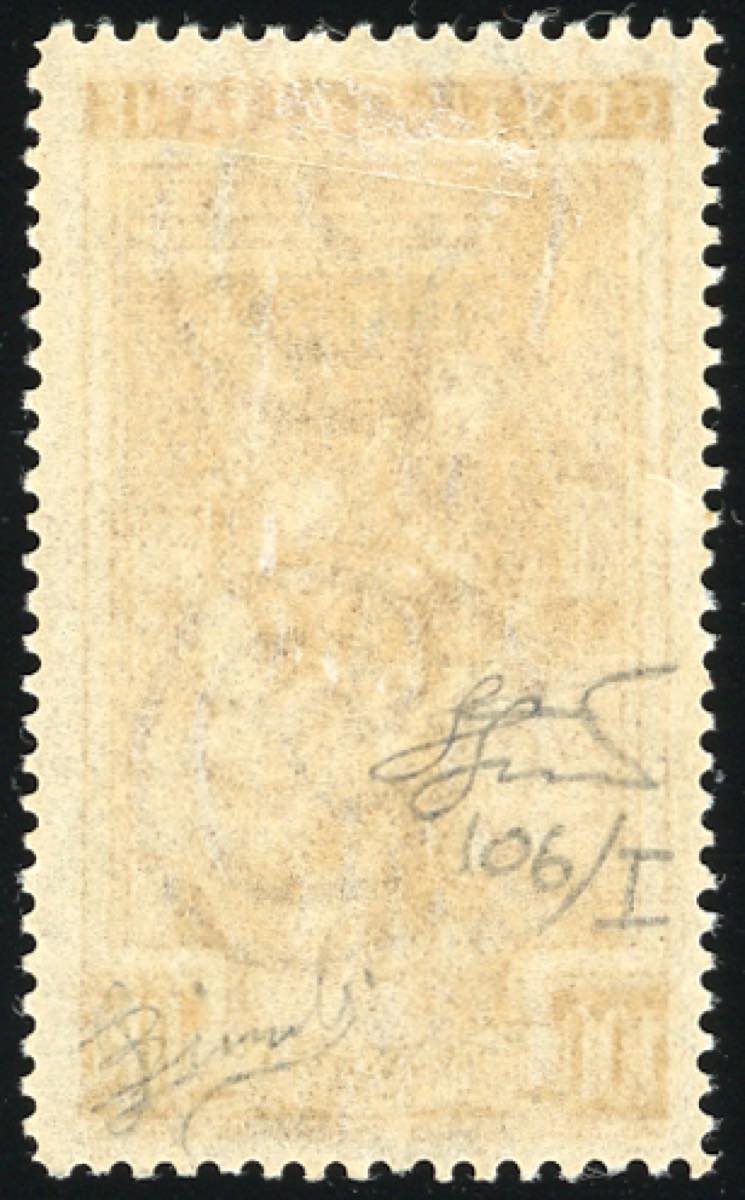 1950 - 100 lire Lavoro, dent. 13 1/4 x 14 1/4 (106/I), gomma originale, invisibile traccia di linguella, perfetto. Raro. Mondolfo, cert. ... Leggi tutto