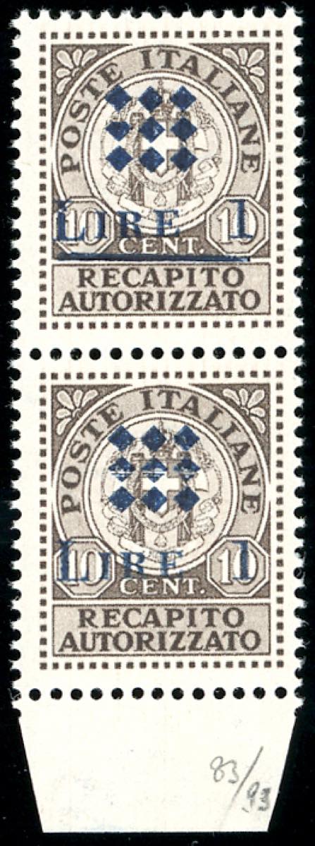 Lotto 1936 - GIUDIZZOLO 1945 - 1 lira su 10 cent., coppia verticale con ...