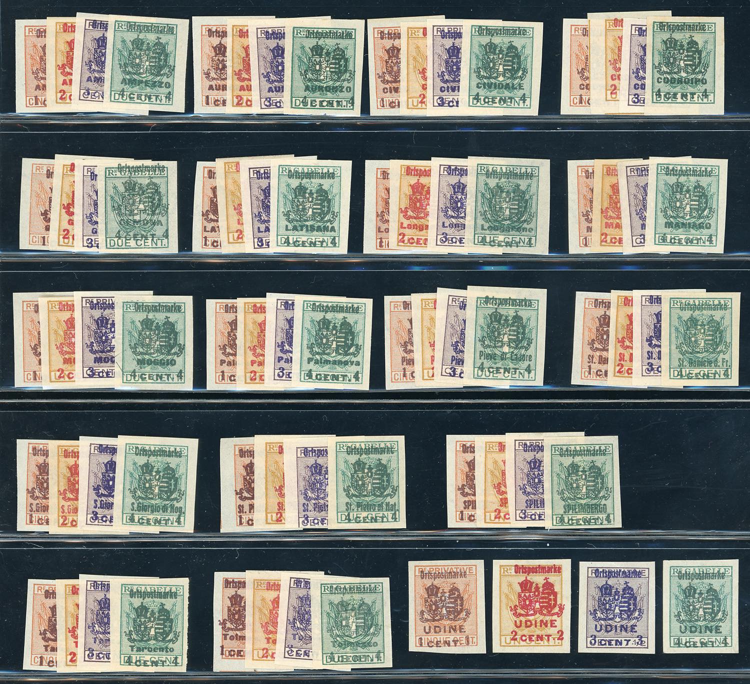 OCCUPAZIONE AUSTRIACA FRIULI RECAPITO AUTORIZZATO 1918 - Giro completo delle 18 località (1/72), senza gomma come sempre, perfetti, molto belli e non comuni.
