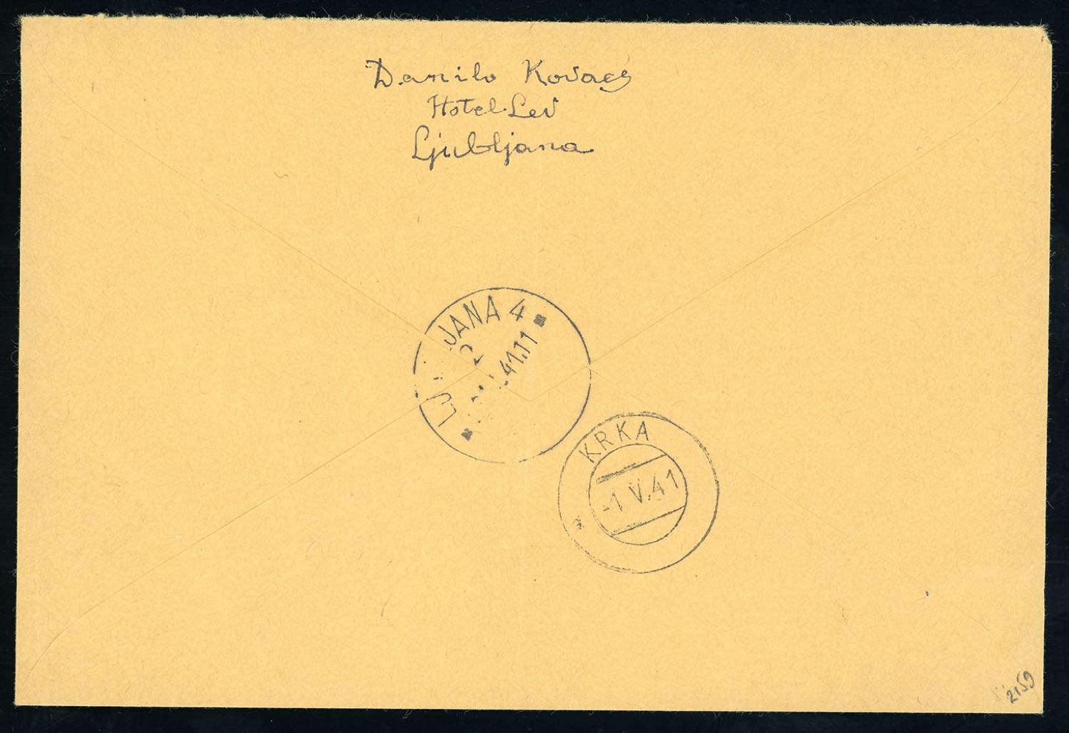 LUBIANA 1941 - 4 d. doppia soprastampa obliqua a mano Co.Ci., 1,50 d. soprastampa a mano, entrambi in nero (10Ab,5AA), perfetti, su busta raccomandata da Lubiana 26/4/1941, primo giorno di emissione, a KRKA, bollo d'arrivo. Varietà non catalogata, insieme UNICO! Rarità dell'emissione. Cert. Chiavarello e Ferrario.