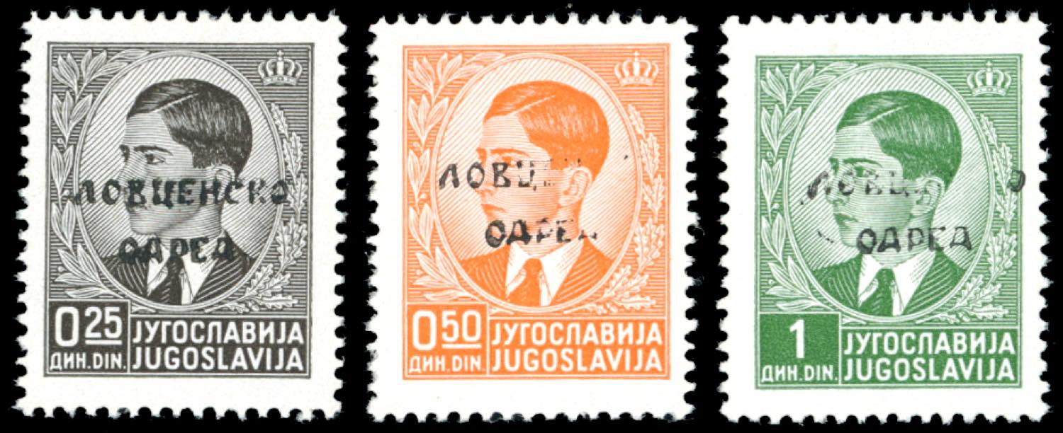 MONTENEGRO PARTIGIANI DEL LOVCEN 1941 - Soprastampati in nero, serie completa di 3 valori, gomma originale, perfetti.