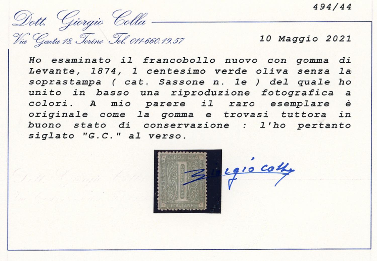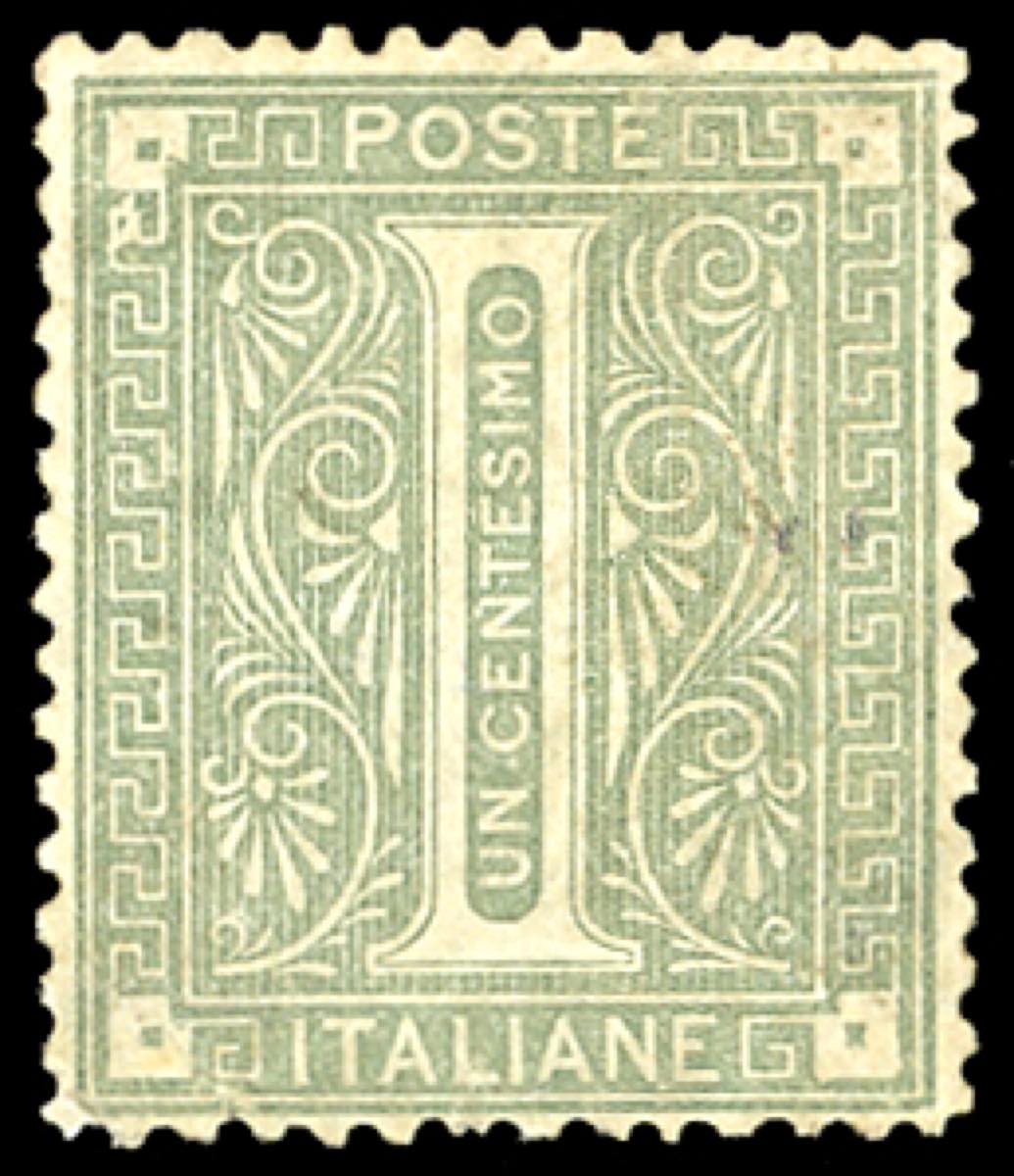 EMISSIONI GENERALI 1874 - 1 cent. De La Rue, angoli modificati, senza soprastampa (1e,francobollo naturale Bolaffi n.68B), ben centrato, ... Leggi tutto