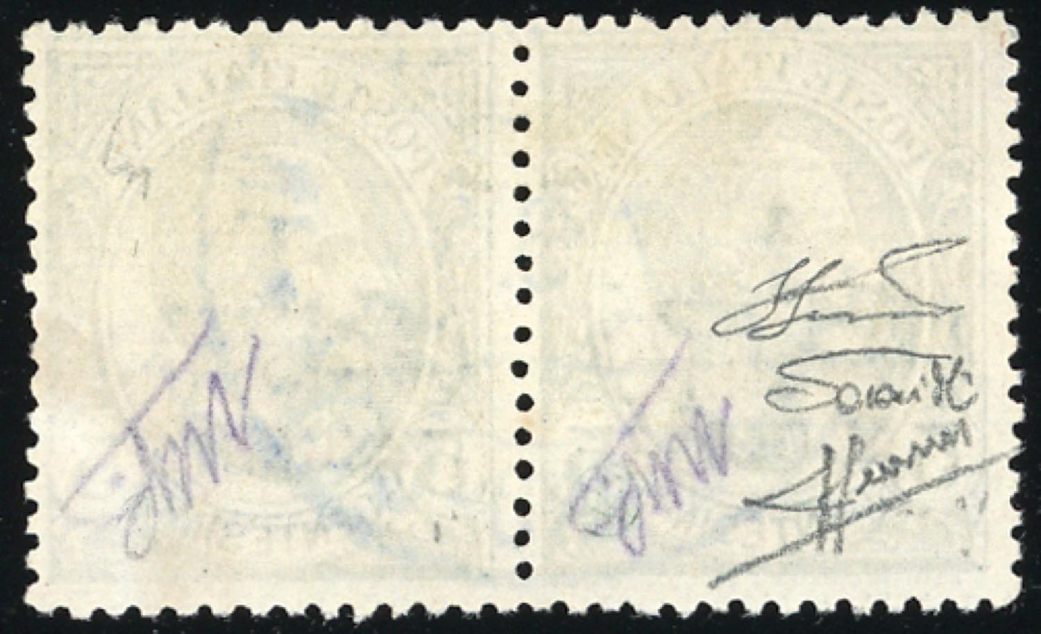 PECHINO 1917 - 2 cents su 5 cent., coppia orizzontale con le soprastampe "Pechino" e "Tientsin" in coppia (1d), usata, perfetta. Rara, cert. Ferrario e Sorani.