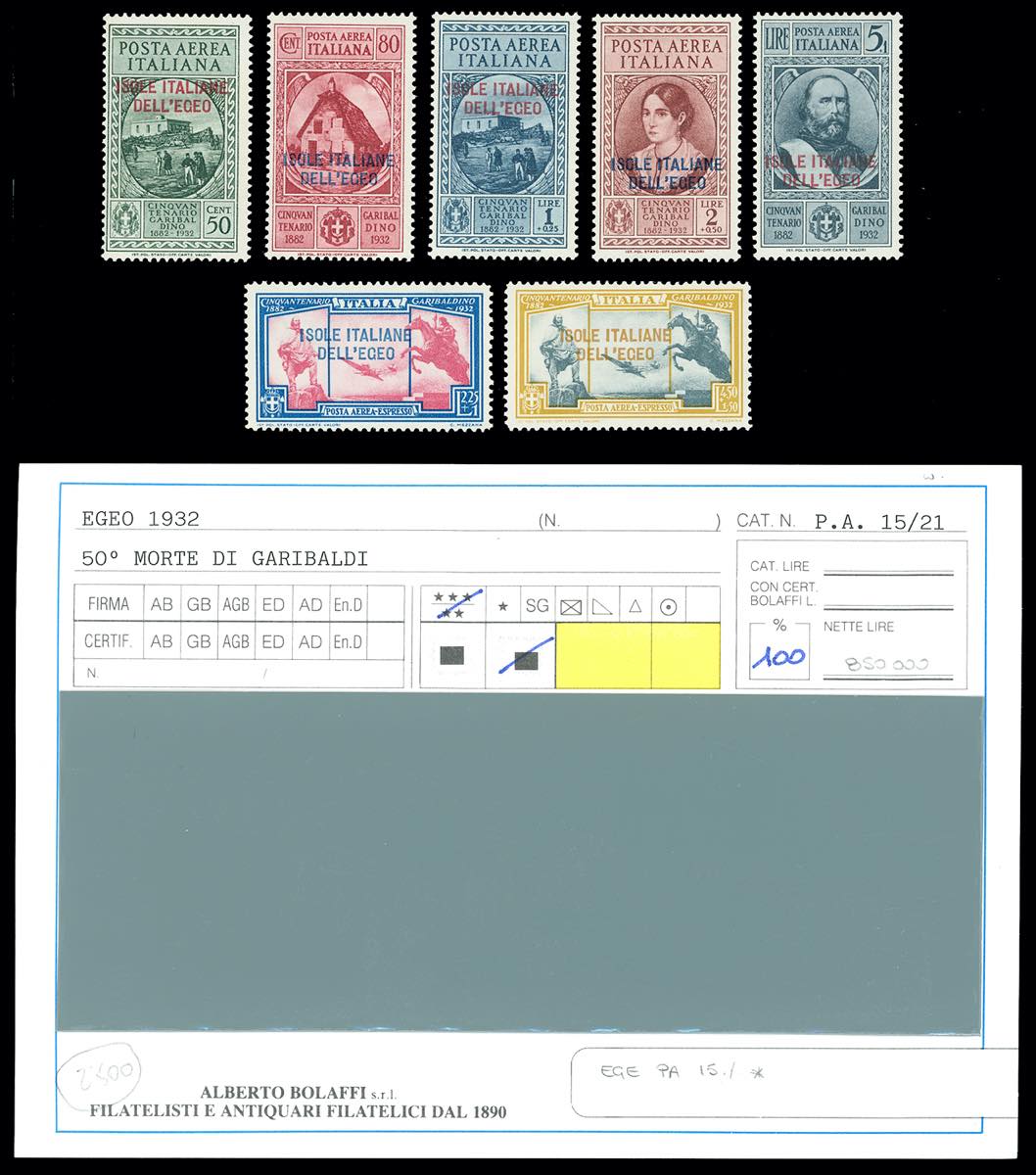 POSTA AEREA 1932 - Garibaldi, serie completa (14/20), gomma originale integra, perfetti e di ottima qualità, molto freschi. Cert. Ferrario.