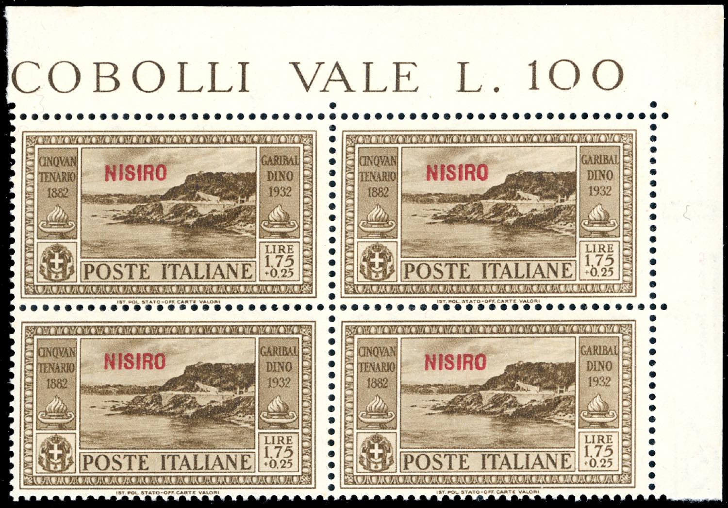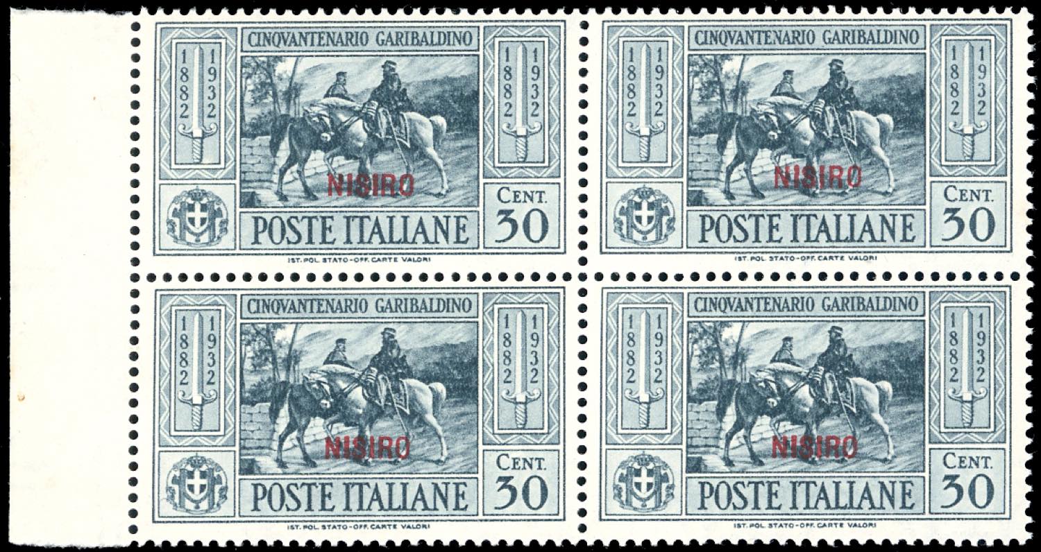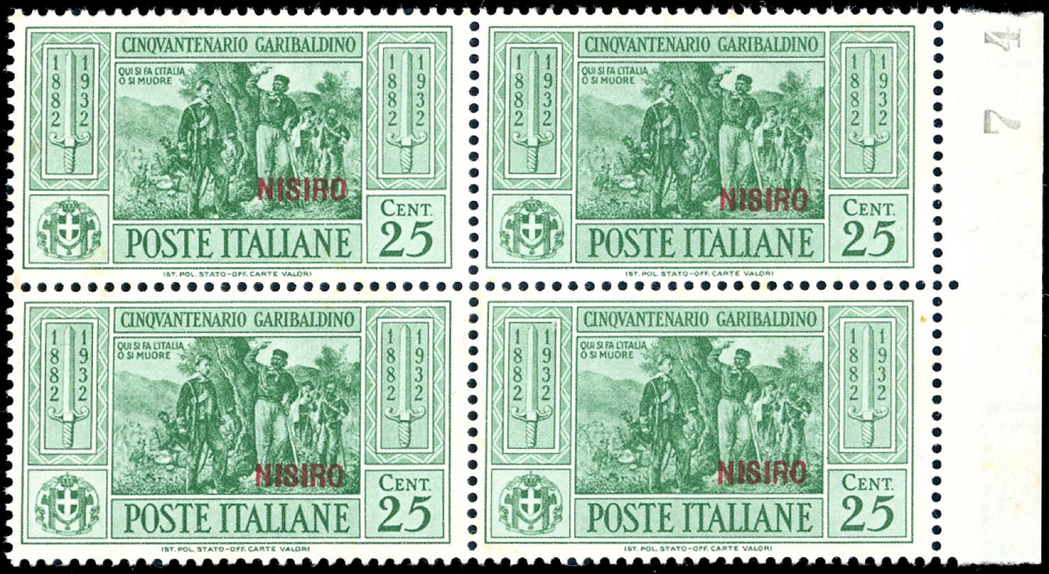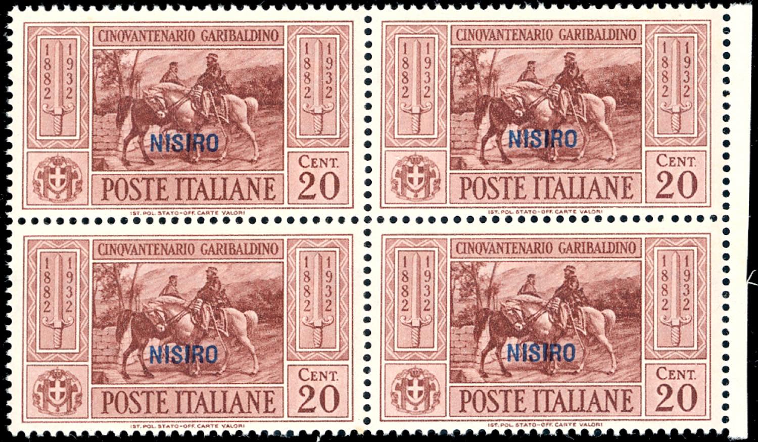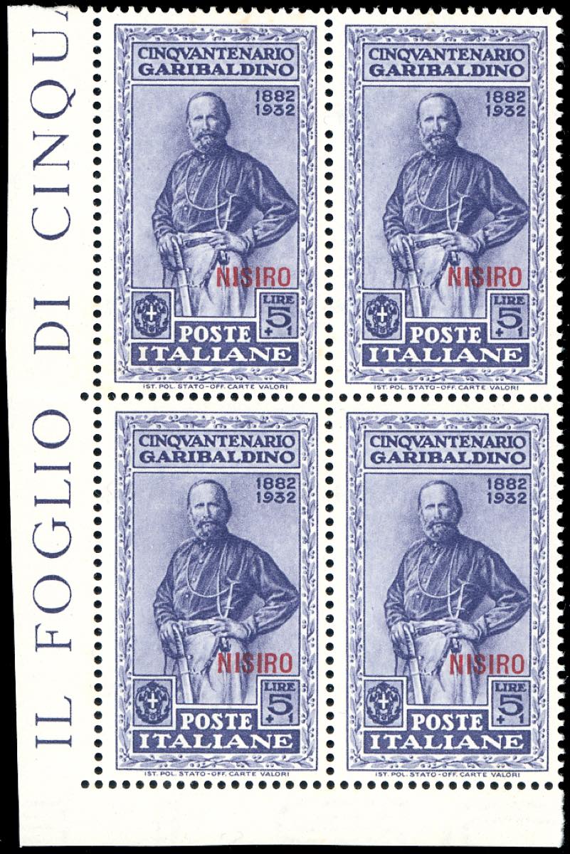 NISIRO 1932 - Garibaldi, serie completa (17/26), blocchi di quattro, angolo/bordo di foglio, gomma originale integra, perfetti, ottima ... Leggi tutto