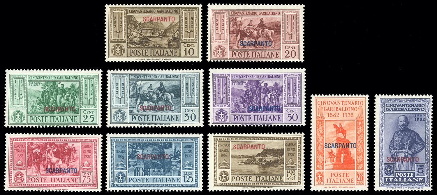 SCARPANTO 1932 - Garibaldi, serie completa (17/26), gomma originale integra, perfetti, ottima qualità.