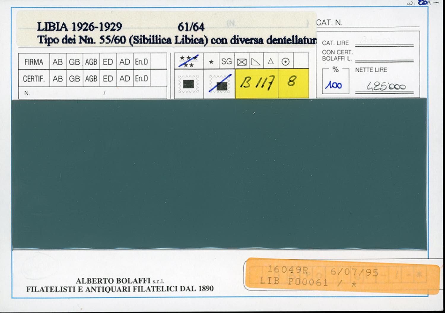 Lotto 2421 - 1926/29 - Sibilla Libica, dent. 11, serie completa (54/57), ...