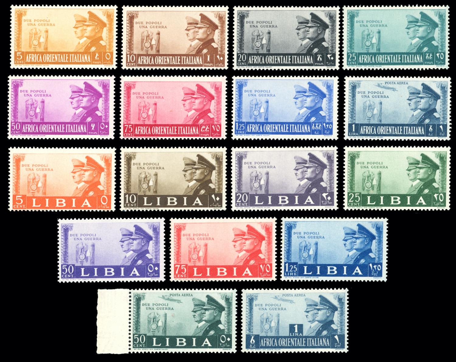 1941 - Fratellanza d'armi, le emissioni per Africa Orientale Italiana e Libia in serie complete (34/40+A20+A21,171/177+A), gomma originale integra, perfetti.