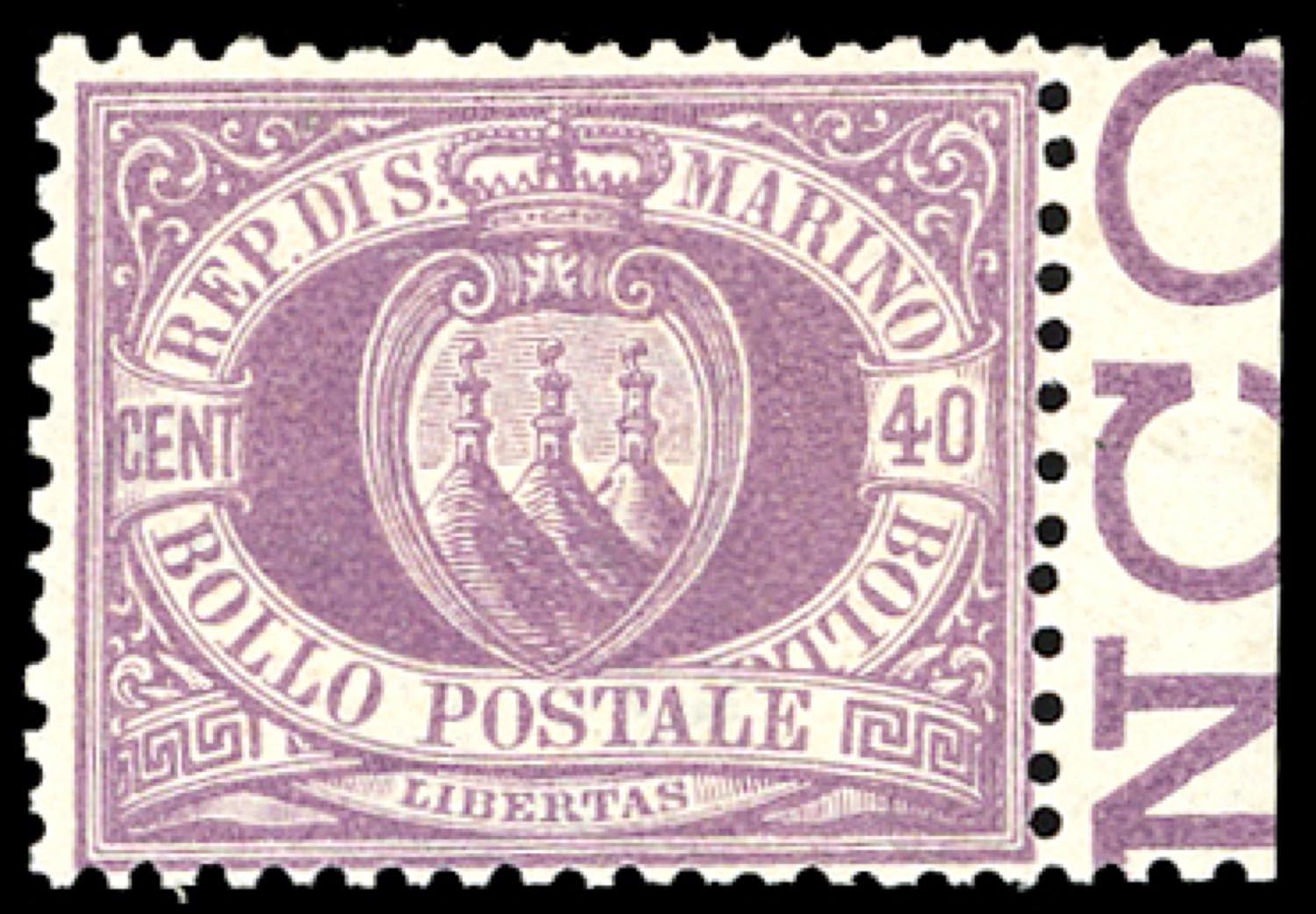 Lotto 2616 - 1877 - 40 cent. Stemma (7), buona/ottima centratura, bordo ...