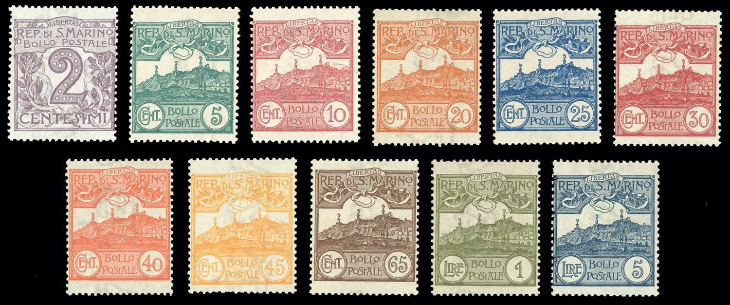 1903 - Cifra o Veduta, serietta di 11 valori (34/43,45), gomma originale integra, perfetti, molto belli, 5 lire cert. Ferrario.