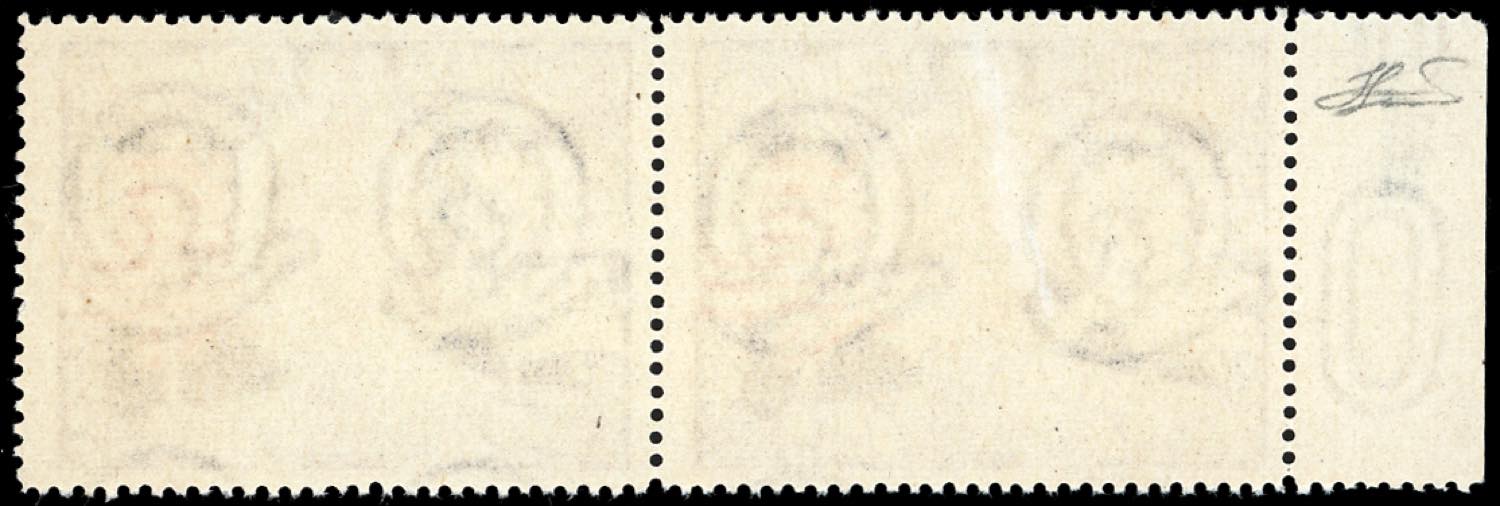 1947 - 5 lire Roosvelt, coppia orizzontale, il primo esemplare senza la stampa dell'azzurro fortemente spostata a sinistra (303Kc,303Kb), ... Leggi tutto