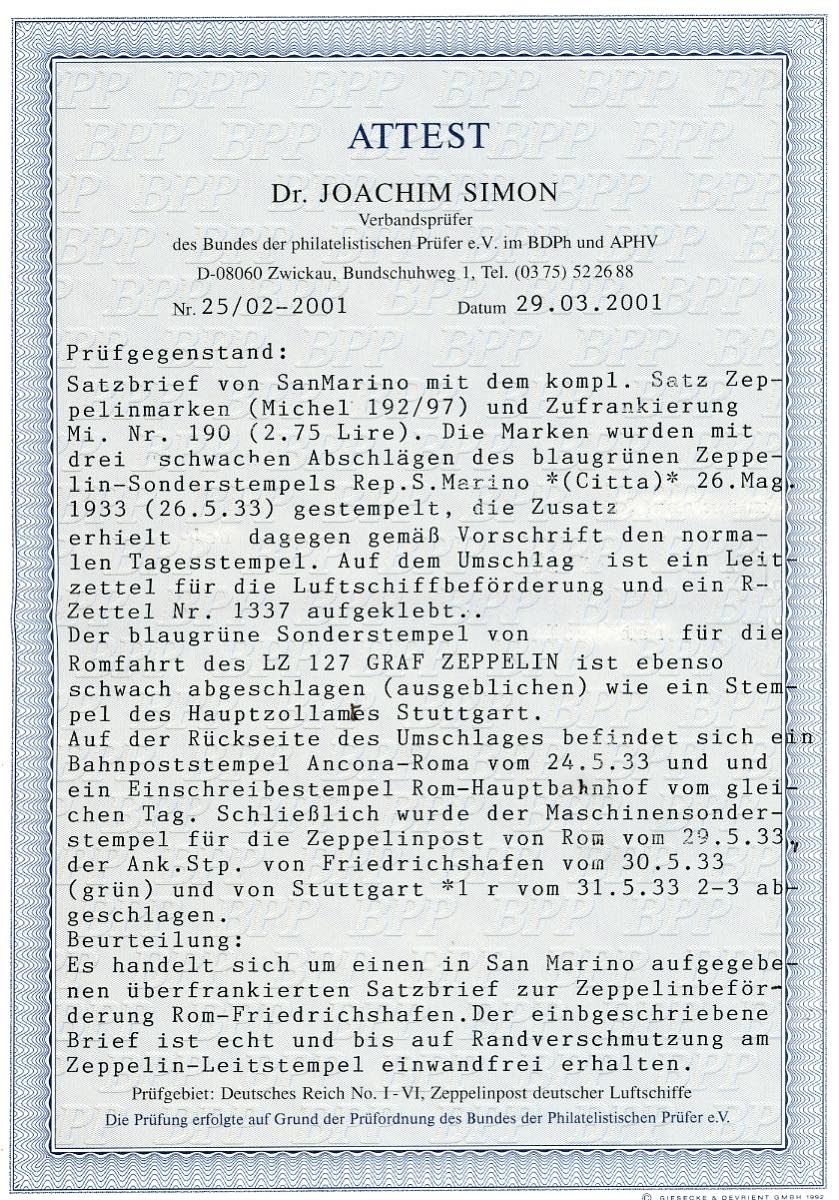 Lotto 2706 - 1933 - Zeppelin, serie completa (11/16), con complementare ...