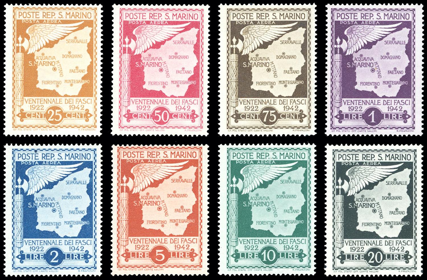 Lotto 2711 - 1943 - Ventennale dei Fasci, non emessi, serie completa ...