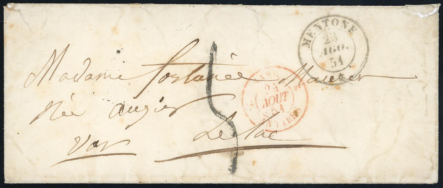 Lotto 2854 - MONACO 1851 - Busta non affrancata da Mentone 23/8/1851 a ...